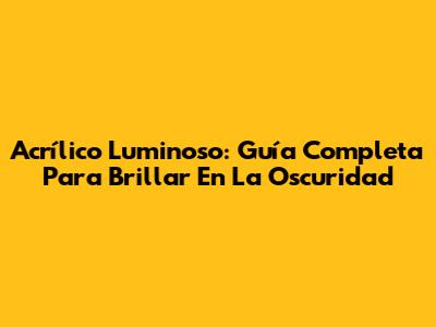 Acrílico Luminoso: Guía Completa Para Brillar En La Oscuridad